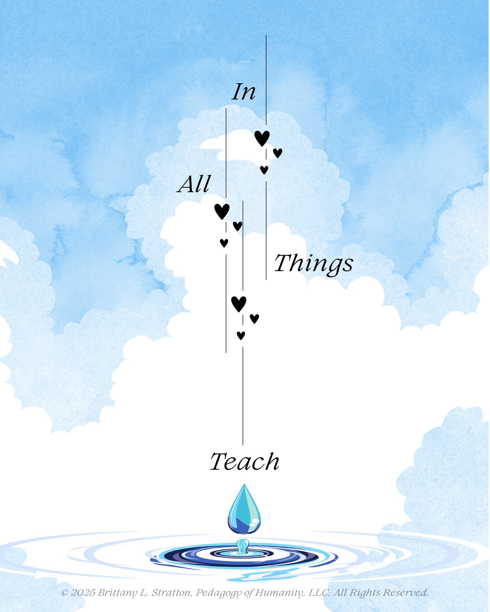 Bring inspiration to your daily reflections with this beautifully designed journal cover, featuring the guiding phrase “In All Things, Teach.” The design symbolizes how every act of love and learning creates ripples that spread outward — a reminder that teaching and compassion extend far beyond the classroom.